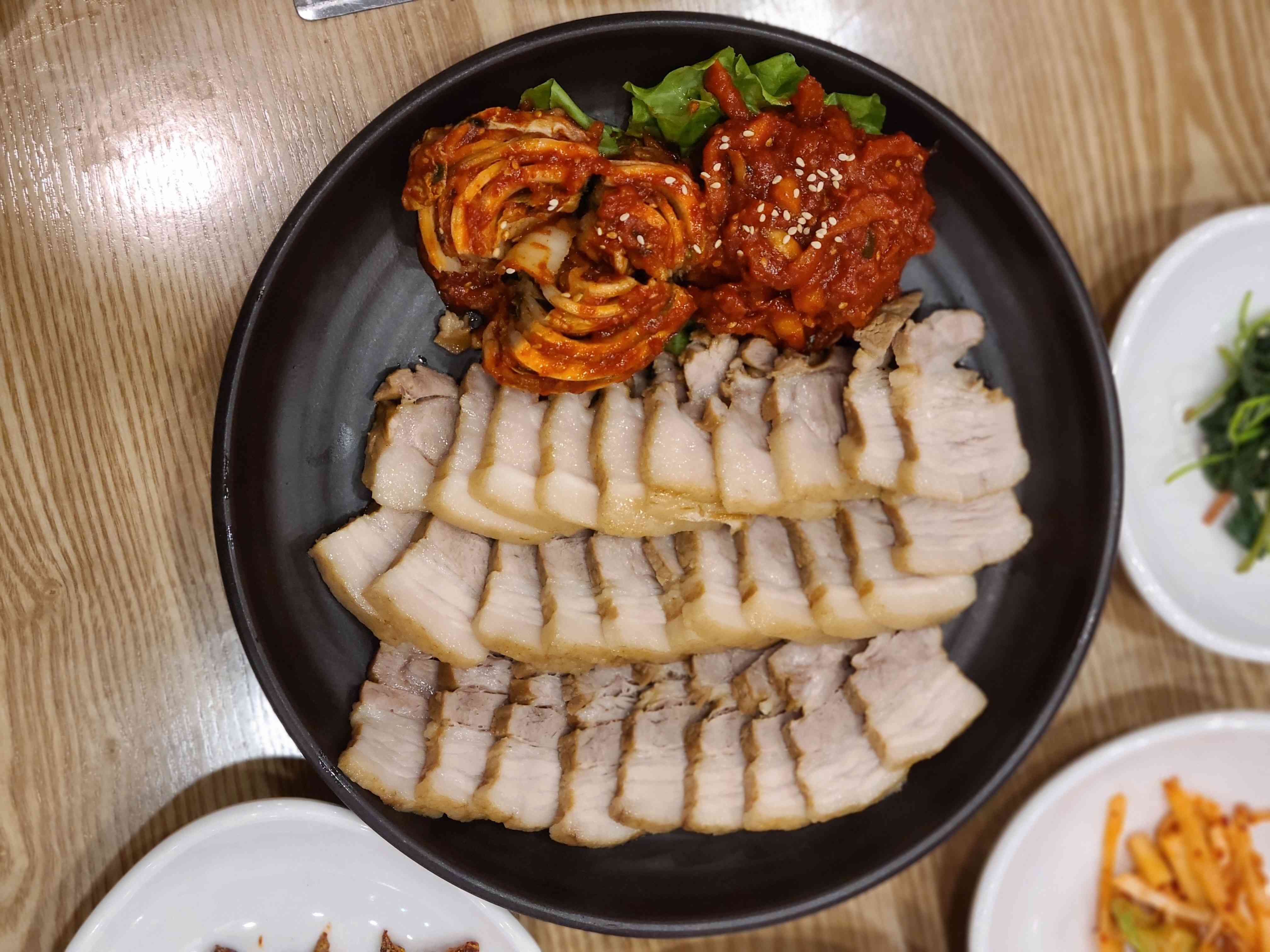 일산 보쌈 맛집으로 통하는 속초명가는 보쌈(32.0), 매콤명태조림(51.0)과 가오리찜(33.0)등의 메뉴가 준비되어 있습니다. 좋은 재료를 이용해 매일 새로 삶아내는 보쌈은 잡내없이 부드러워 이집의 대표메뉴입니다. 세트메뉴로 주문하시면 보쌈과 함께 막국수가 나와 한끼 식사로도 손색없습니다.
