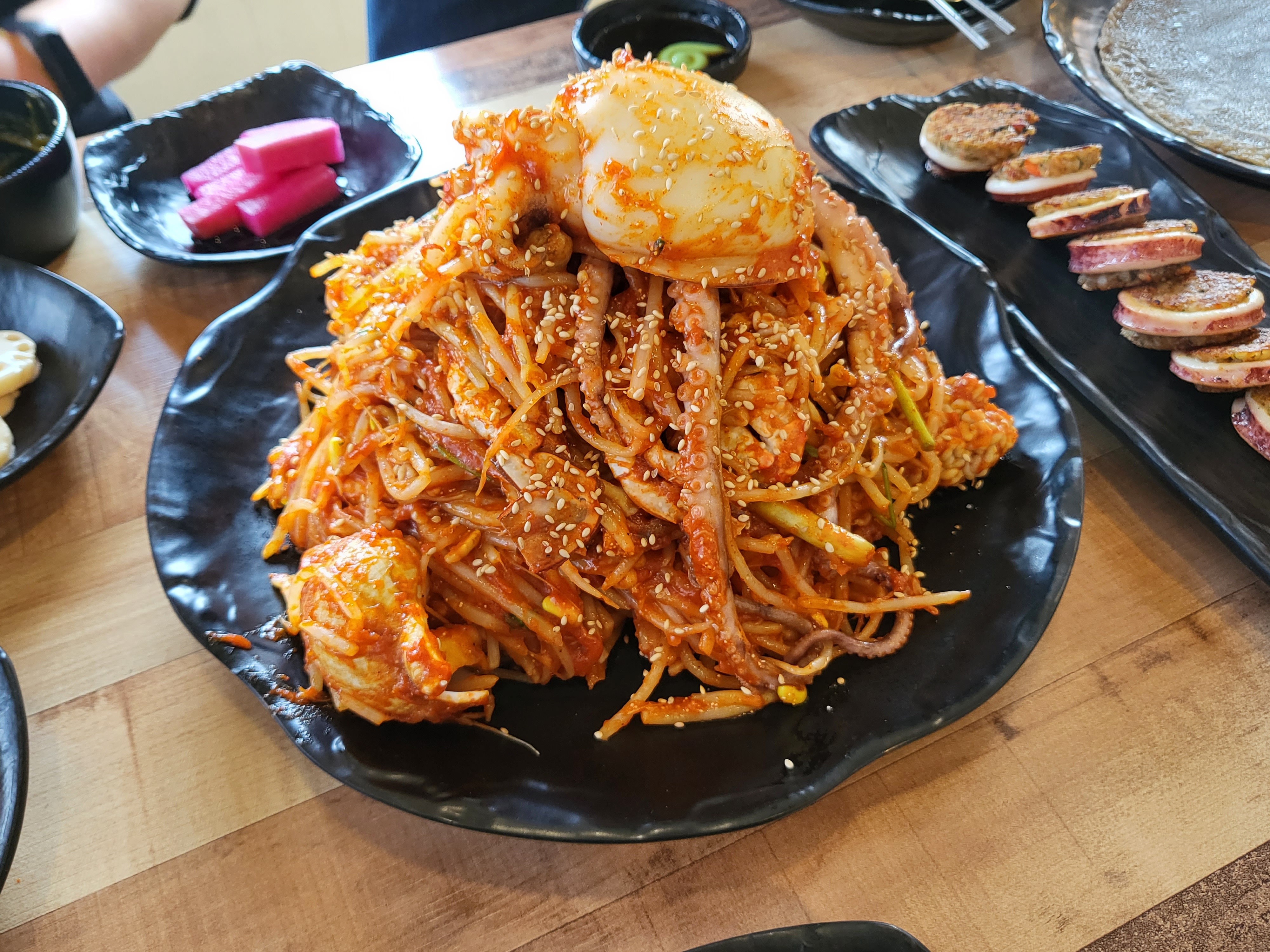 각종 채소와 함께 넙적당면을 곁들여서 낙지를 밥에 비벼서 드시면 기분 좋은 매콤함을 느끼실 수 있습니다. 길모퉁이는 경기도 고양시 일산동구 산두로273번길 37에 위치하며 매주 일요일은 쉬고 영업시간은 오전11시에서 오후9시30분까지입니다.
