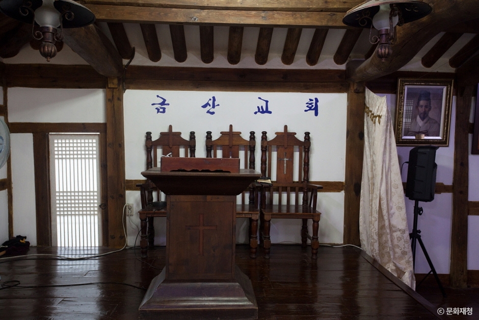 금산교회는 1908년에 세워진 역사적인 한옥 교회로, 전라북도 문화재자료 제136호로 지정되어 있습니다. 이 교회는 전주선 교부인 Lews Boyd Tate의 손길로 지어졌으며, 특유의 한옥 양식과 아름다운 자연경관이 어우러져 있습니다. 금산교회는 기독교 역사와 전통을 상징하는 곳으로, 방문객들은 고즈넉한 분위기 속에서 신앙의 의미를 되새길 수 있습니다. 교회의 독특한 'ㄱ'자 형태 구조는 근대교회의 특별한 유형 중 하나로, 내부는 남녀가 구분된 형태로 설계되어 있습니다. 방문자들은 아름다운 한옥 건축물과 함께 조용한 명상을 즐기며, 기념사진을 찍기에 적합한 장소이기도 합니다.