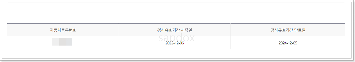 1.3. 자동차 검사유효기간 시작일과 만료일을 확인할 수 있습니다.