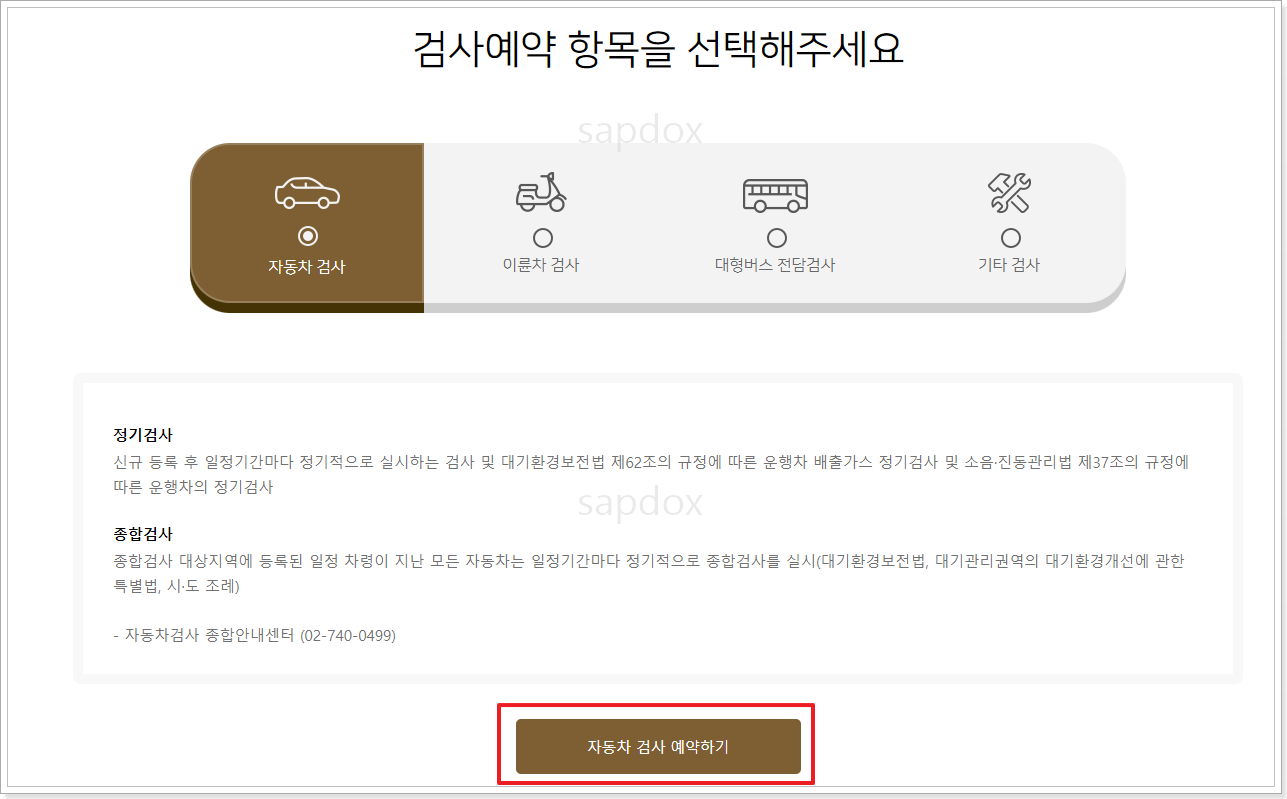 2.3. 자동차 검사 예약하기를 클릭합니다.