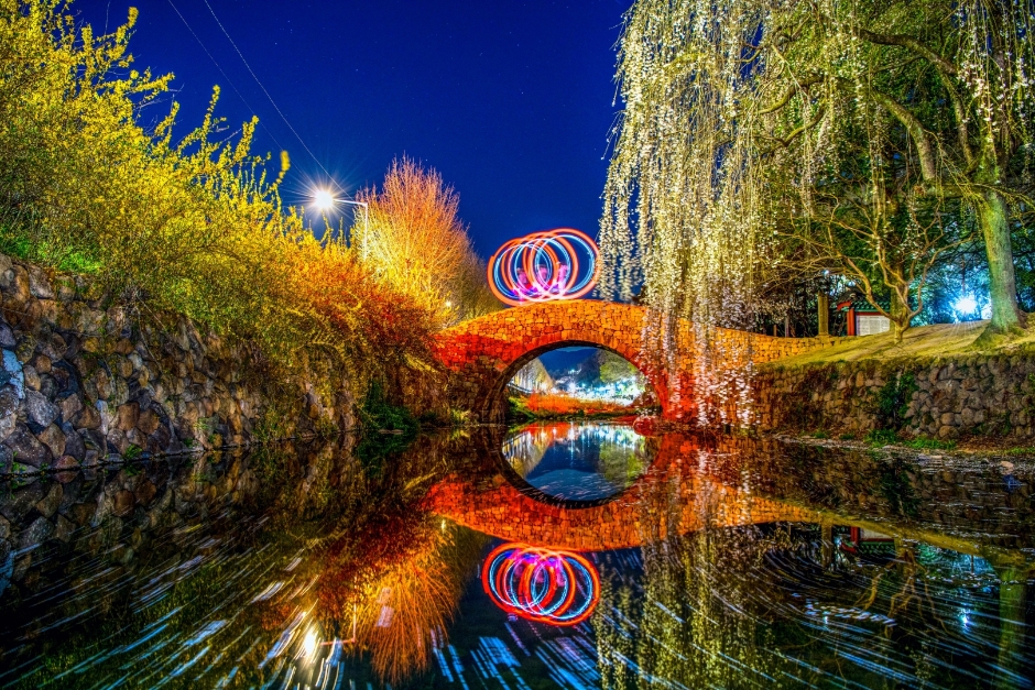 영산면에 위치한 만년교는 역사적인 다리로, 1780년에 세워졌습니다. 이곳은 아치형 디자인이 아름다워 많은 관광객이 찾는 명소입니다. 특히, 다리에 수양벚꽃이 만발하는 봄에는 장관을 이루며, 촬영 명소로 각광받고 있습니다. 주변 경치와 어우러져 산책하기 좋은 장소로, 조용히 앉아 강을 바라보며 휴식을 취하기에도 좋습니다. 다리 위에서 바라보는 일몰은 꼭 사진에 담고 싶은 풍경입니다.