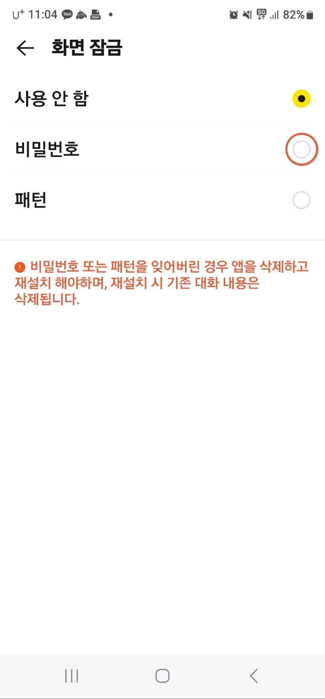 모바일 카카오톡 비밀번호 설정 방법
