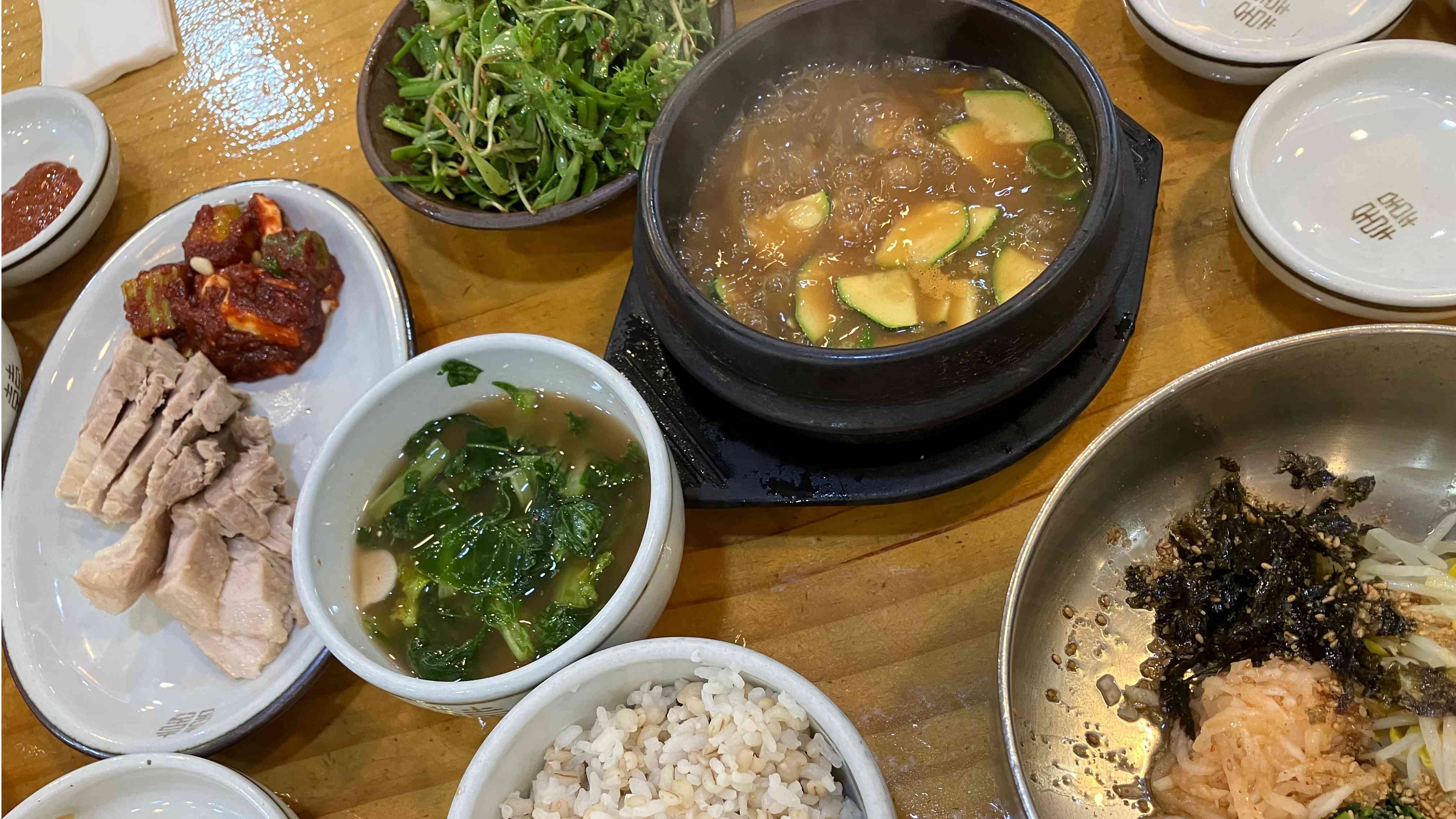 해운대 맛집 베스트10 비학산보리밥생칼국수는 고소한 보리밥과 칼국수가 맛있는 집입니다. 보리밥 정식(8.5)에는 된장찌개와 비벼 먹을 수 있는 나물들이 함께 나오며, 조기구이, 보리싹 겉절이 등의 음식 등이 밑반찬으로 제공되며 각종 해산물로 육수를 낸 바지락칼국수(8.0) 도 맛있는 곳입니다. 또한 사이드메뉴인 파전(15.0)은 해물이 잘게 많이 들어가 있어 식감도 좋고 맛도 좋아 보리밥과 함께 드시기에 좋습니다.